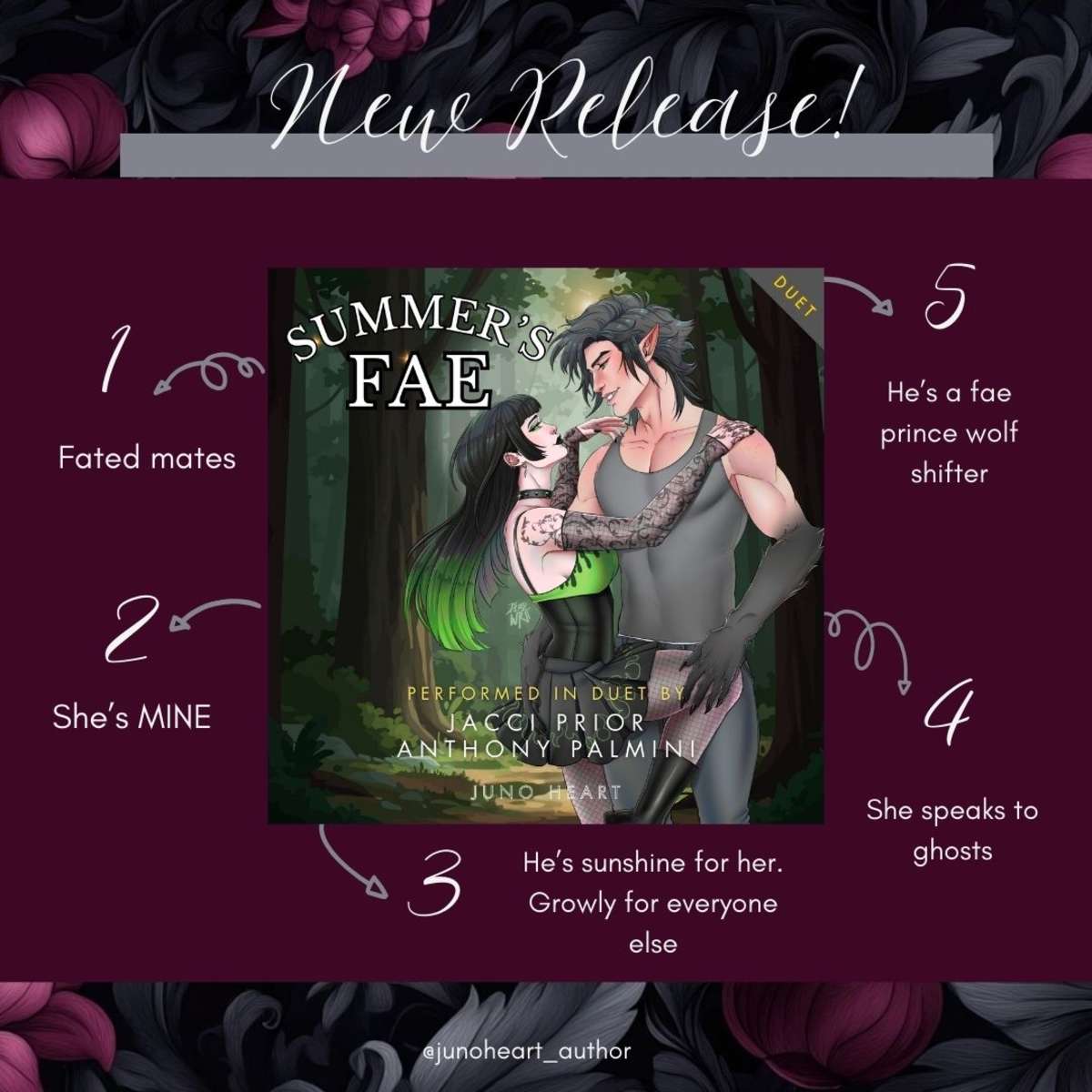 A spicy, fun, fated-mates portal fantasy romance available at all good audiobook retailers, narrated by the amazing Jacci Prior & Anthony Palmini.